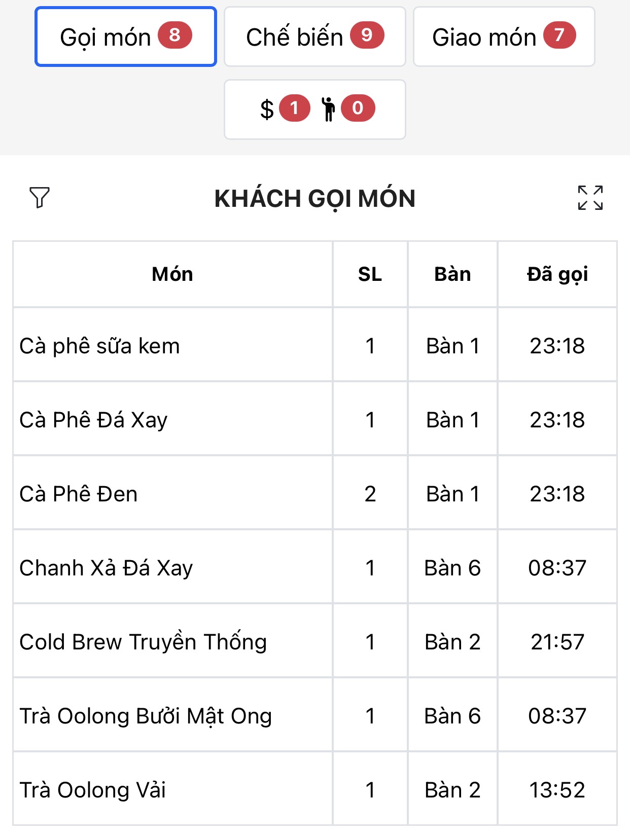+ Thông tin gọi món từ khách hàng sẽ được chuyển đến điện thoại nhân viên.+ Nhân viên có thể biết được món nào đang gọi, món nào cần chế biến, món nào chờ giao.